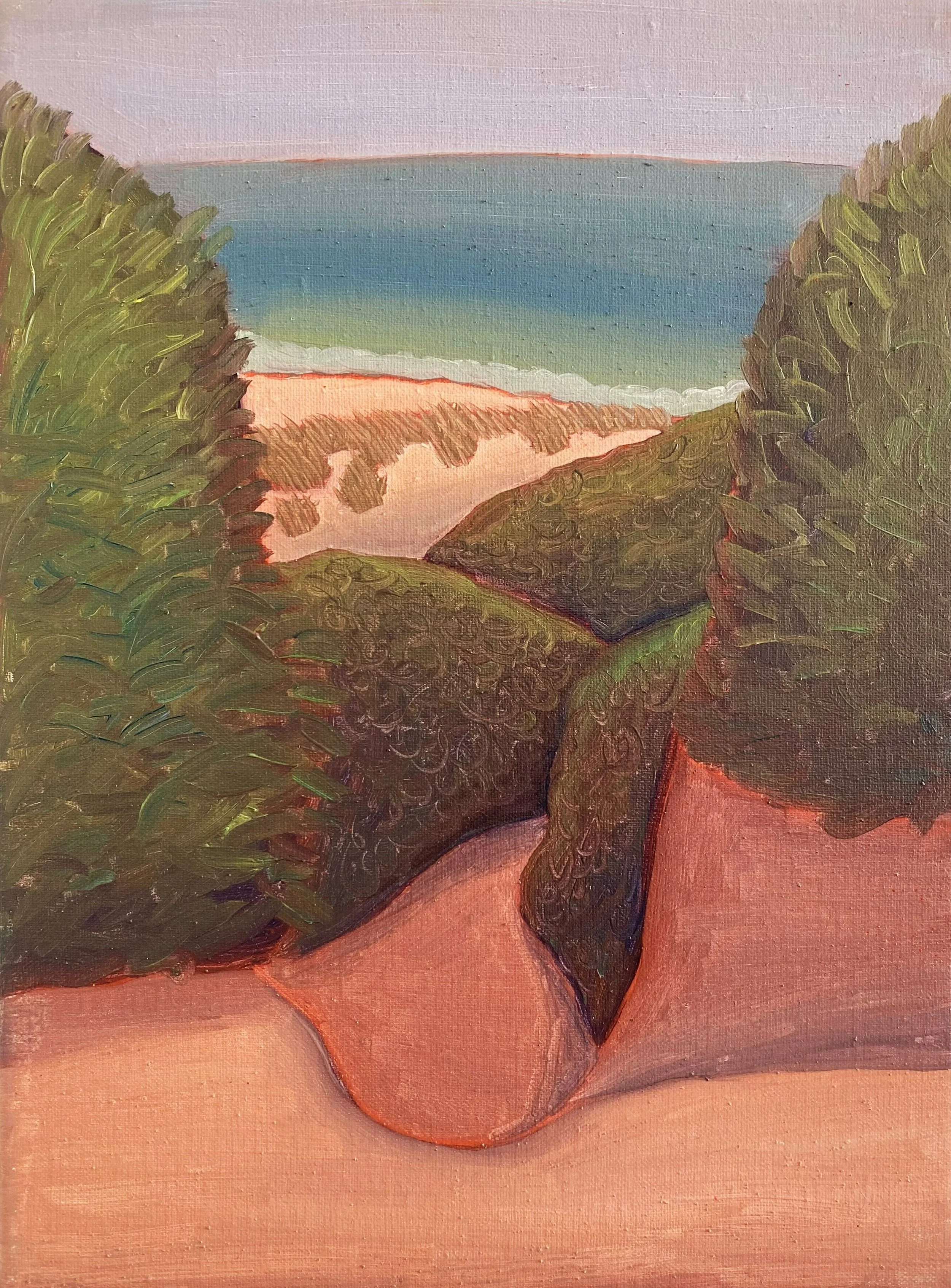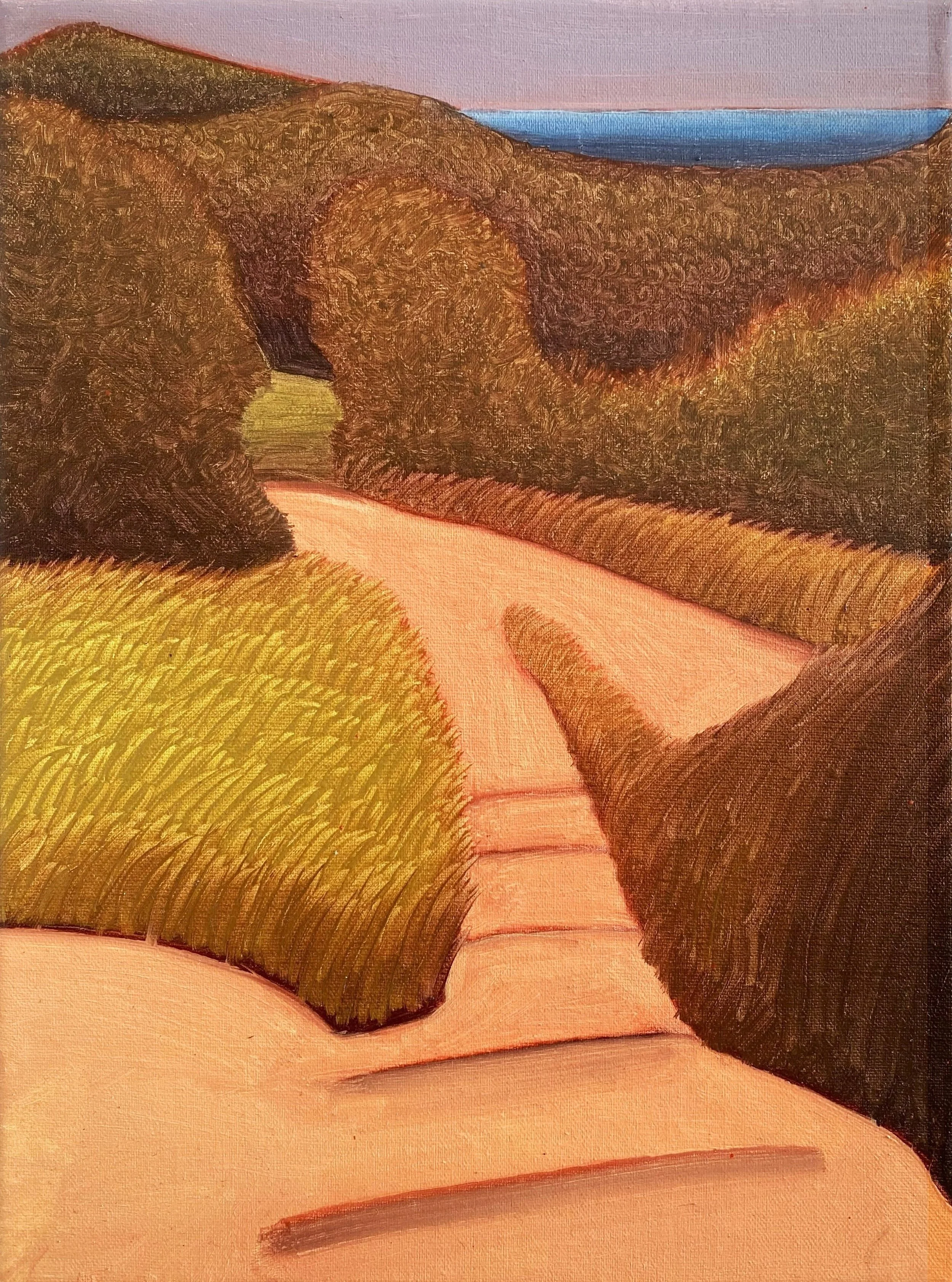 Downhill (Fort Tilden), Oil on linen, 9 x 12 inches (2024)